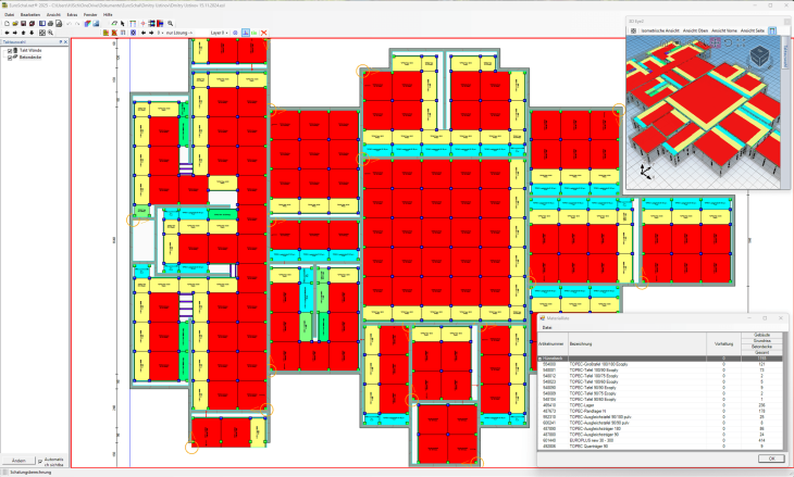 Cassaforma per solai a pannelli Hünnebeck Topec con EuroSchal.net. È possibile importare le planimetrie da EuroSchal 64 Bit.